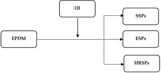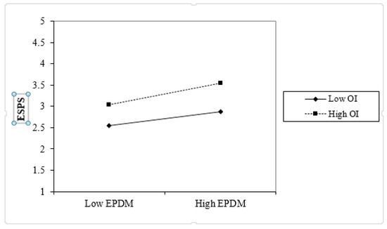 In contrast, the moderating effect of OI on the relationship between EPDM and ESPs was not significant. Thus, the data do not support Hypothesis 2b (see Table 3) and Figure 5.