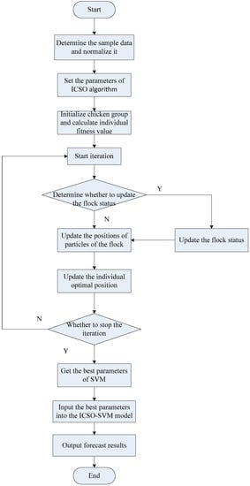 The prediction process of short-term power by the ICSO-SVM model is shown in Figure 3.