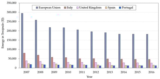 - Eurostat Energy Balance Sheets 2016 DATA. Available online: https://ec.europa.eu/eurostat/web/products-statistical-books/-/KS-EN-18-001?inheritRedirect=true (accessed on 19 January 2019).