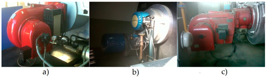 Example of (a) naphtha, (b) propane gas and (c) natural gas burners connected to steam boilers.