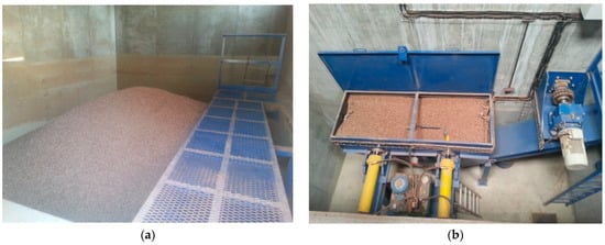 Biomass warehouse (a) with a burner automatic feeding system (b).