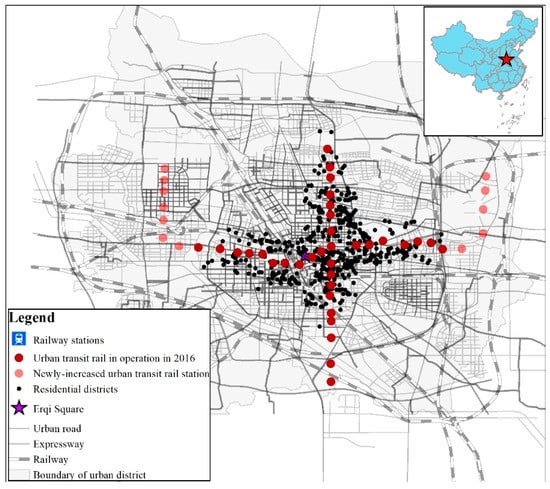 Commonly, in the previous case studies, cities in developed countries, such as San Francisco [13], Atlanta [14], Toronto [15], and Texas [16], were chosen as case studies. In addition, the existing research taking cities in China as a case study is mainly concentrated on exploring the impact of URT of first-tier cities, such as Beijing [17], Shenzhen [18], and Shanghai [11,16], while little attention has been paid to the second-tier cities (e.g., Zhengzhou) that have just begun to construct and operate their URT systems. In fact, according to the national development plan in China, in addition to the first-tier cities such as Beijing [17,19], Shanghai [11,16], Guangzhou, and Shenzhen, the cities that are building rail transit in the future are mostly second-tier cities such as Zhengzhou, Chengdu, and Xi’an. This paper chooses Zhengzhou, one of the leading second-tier cities, as a research object, and provides suggestions for its URTJD, as well as and for other cities at the same level.