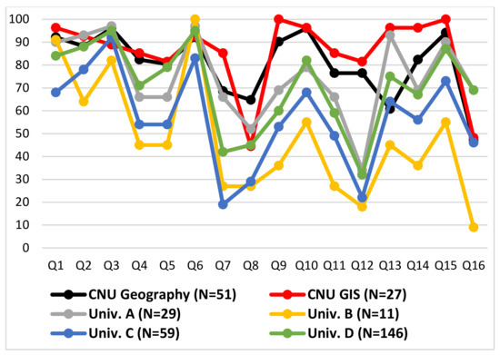 | University | Geo in CNU | GIS in CNU | Univ. A | Univ. B | Univ. C | Univ. D | Texas State | UWG |