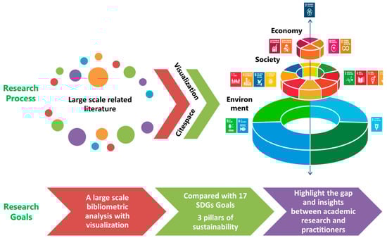 Most related literature reviews have explored the humongous research to catch the theoretical trends, but ignore deeply analyzing the gap between academic research and practice [33,34]. As indicated by the empirical evaluation on the usefulness of academic research to practitioners, in particular, business schools’ research has limited impact on business practitioners and makes limited contribution for practice, although a number of scholars strive to reduce the research and practice gap [33,34]. Therefore, in this review, centering on the practical 17 SDGs for the sustainability of the U. N., we compared the achieved and untouched topics to find the gap between academic research and practice in Section 5.