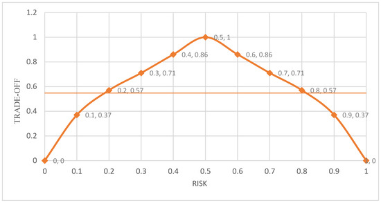 In the process of risk assessment, the decision maker can make the order weight coefficient change continuously by adjusting the risk level, and obtain the appropriate evaluation results to meet the needs of the decision maker. The choice of risk range can be from 0 to any value, the range from 0 to 1 in our research. After setting different order weights, the calculation formulas for risks and trade-offs are as follows: