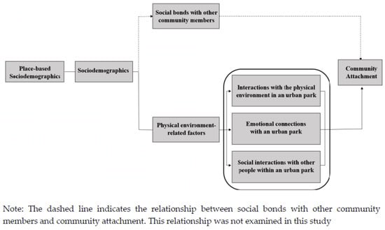 As previous studies noting the importance of the physical/natural environment in predicting community attachment established, there is a need to explore different forms of humans’ interactions and relationships with the physical environment as they lead to the creation of sentiments for a community. By and large, the predominant focus of these studies has been on amenity-rich rural areas. In contradistinction, our study asks whether the physical environment in urban areas have similar effects on community attachment. Here, using an urban park as a study site, this study specifically investigates the predictive values of different forms of human interaction and relationships associated with the urban parks for community attachment. While a great body of literature has noted that the social bonds individuals develop with other community members are an important determinant of community attachment [,,,,,], this research primarily focuses on the predictive values of the physical environment.