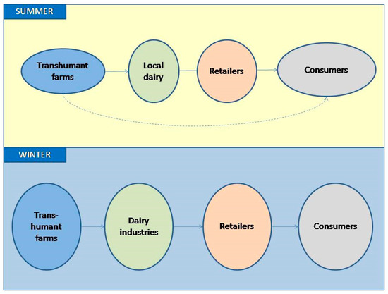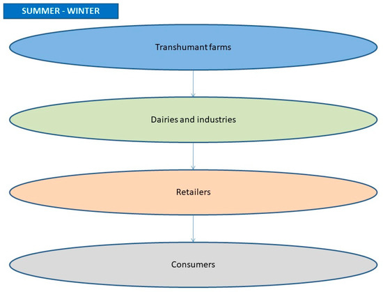 Despite some level of ‘embeddedness’, transhumance-specific cheese does not fully pertain to such certification schemes, as in this case production is undeniably linked to the territory but also to the specific practices of transhumant farms and to their cultural heritage and traditional character, which are not area-specific. Furthermore, although Greek consumers have been reported to be willing to pay more for certified products [60,61,62,63], basic notions reflected in them—such as tradition and locality—in some cases have been used in an arbitrary and misleading way [64], in order to increase the social embeddedness of products which have no clear connections with respective territories [41]. In order to ensure benefits, transhumance-specific production should ideally lead to an overall marketing strategy to promote existing identities, expressing the deep linkages between practices, local culture and governance [41]. A closer connection of this sort could be achieved through ‘short supply chains’, a term which embraces different types of SCs [41,59]. Their characteristics vary across regions and countries [65], but they commonly aim to reduce the physical distance between consumers and producers, thus helping to maintain the specific identity of production [59,65]. Short SCs have been developed in parallel to conventional ones and have entail benefits in terms of added value for producers and product recognizability, helping to protect vulnerable local production systems from global market competition [66].For this reason, short SCs are targeted by the CAP and are an issue of academic debate and discussion [59]. Nonetheless, conventional SCs have also considerable mid- and long-term advantages [59,67], so a question arises regarding the best way for transhumance products to reach the consumer but also the implications of adopting such a quality approach at the primary production (farm) level.