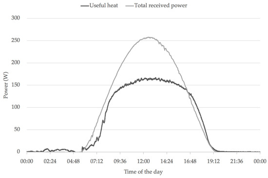 Test 2: total received power and useful heat.