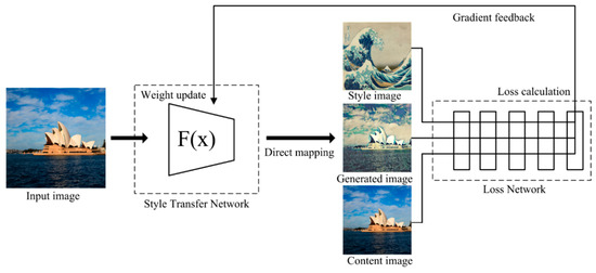 The final target in the training phase is to minimize . The weight of the style transfer network will be updated according to the total loss by gradient descent algorithm.
