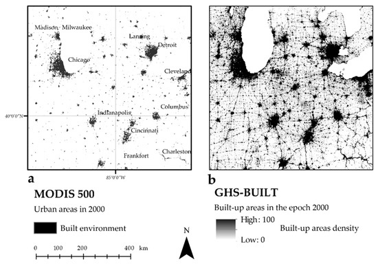 - Schneider, A.; Friedl, M.A.; Potere, D. A new map of global urban extent from MODIS satellite data. Environ. Res. Lett. 2009, 4, 044003. [Google Scholar] [CrossRef]