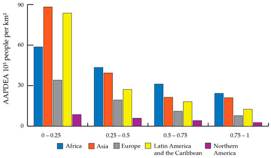 | Region/LUE Class | 0–0.25 | 0.25–0.5 | 0.5–0.75 | 0.75–1 | 0–0.25 | 0.25–0.5 | 0.5–0.75 | 0.75–1 |