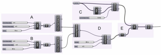 Rhinoceros 3D is a tool for building parametric models by means of an algorithmic program. Grasshopper 3D is a visual programming environment which runs as a plug-in on top of Rhinoceros 3D modeling software [17]. By dragging the components or nodes onto the screen canvas and mapping the flow of parameter relations, a user-defined layout is achieved with geometries and materials [18]. Grasshopper 3D requires no knowledge of programming or scripting but still allows designers to build form generators from the simple to the awe-inspiring [17]. It is better for multi-scenario testing than non-algorithmic modeling software. Changing parameters propagates changes across all functions and redraws the geometry [19].