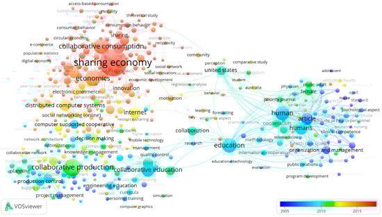 The publications related to collaborative education have emerged around the years 2005 to 2008 (see Figure 2); subsequently, about the year 2010, research probing collaborative production began to develop. Then, after the year 2012, publications refereeing to collaborative economy, collaborative consumption, and sharing economy took over the research field. Sharing economy is currently the most used term in publications.