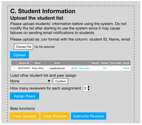 The peer review mechanism allows students to learn from their peers’ and their own work through the process of reviewing, commenting, and self-reflection. The process of reviewing a peer cultivates the positivity of active learning because it enables students to participate in the learning process actively [25]. Learning through peer reviewing can also help students to set their learning goals and evaluate their performance while reviewing others’ work [26]. The peer review mechanism allows students to not only review and give feedback to their peers but also receive detailed and timely feedback, which is important for students but often difficult for the instructor to provide [27,28].