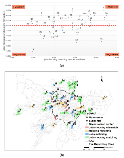 (a) Jobs-housing matching quadrant distribution; and, (b) Jobs-housing matching distribution feature
