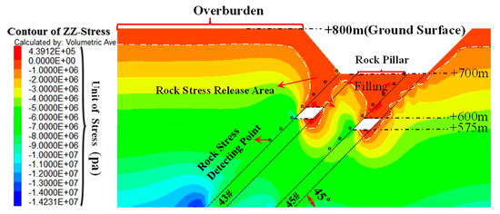 Stress variation characteristics of #43 and #45 coal seams after filling.
