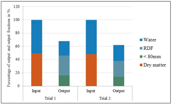 Four RDF samples were sorted manually—two samples during trial 1 (the main input screened at 100 mm) and two samples during trial 2 (the main input screened at 150 mm).