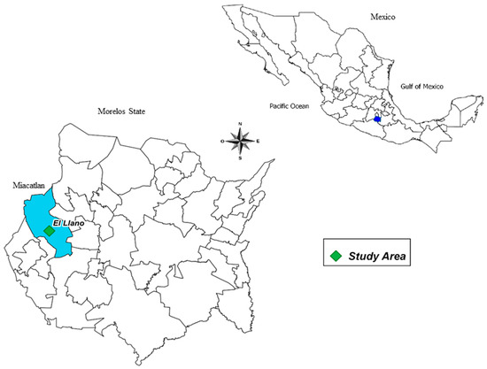 An experimental Jatropha curcas plantation was established in Miacatlan, a rural municipality from Morelos state, Mexico (latitude 18° 47′43.3″ N, longitude 99° 21′0.40″ W) at 1000 m a.s.l., as shown in the map in Figure 1.