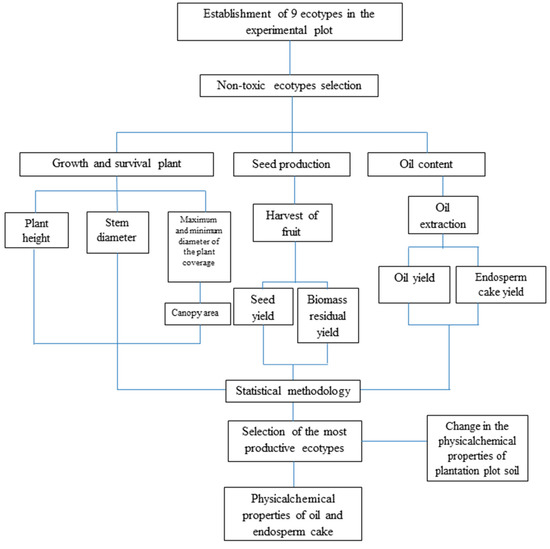 The nontoxic ecotypes with the best results in growth, survival and yield of seed and oil were selected to analyze the physical–chemical properties of oil and endosperm.