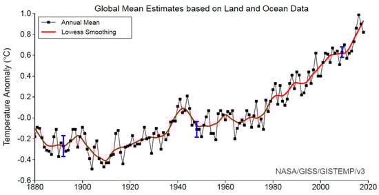 - NASA. NASA GISS Surface Temperature Analysis. 2019. Available online: https://data.giss.nasa.gov/gistemp/graphs_v3/ (accessed on 23 March 2019).