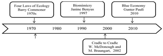 However, a few standout academics played a major role in the circular economy development. The circular economy concept evolved from five main schools: industrial ecology, cradle to cradle, performance economy, blue economy, and biomimicry (Figure 1).