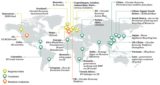 In a bid to capitalize on such opportunities, public- and private-sector decision-makers around the world set out policies on the CE (Figure 3); however, these policies vary in how they refer to the CE and how they approach it [18].