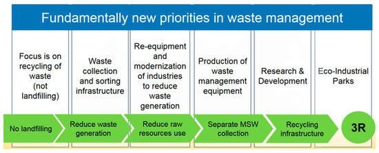 Figure 6. Priorities of “strategy for development of industry for sorting, recycling, and treatment of waste for the period until 2030” [29].