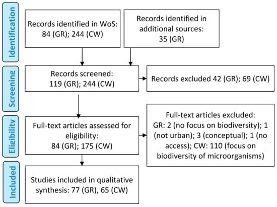 - Moher, D.; Liberati, A.; Tetzlaff, J.; Altman, D.G. PRISMA 2009 Flow Diagram. The PRISMA statement. PLoS Med. 2009, 6, e1000097. [Google Scholar]