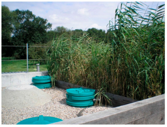 - Zehnsdorf, A.; Scherber, A.; Schmidt, S.; Ebersbach, A.T.; Bernhard, K.; Jentzsch, D.; Schlenker, U. Waste Water Treatment with Reeds in a Mobile Root Space Treatment Plant. Chem. Ing. Tech. 2018, 90, 333–339. [Google Scholar] [CrossRef]