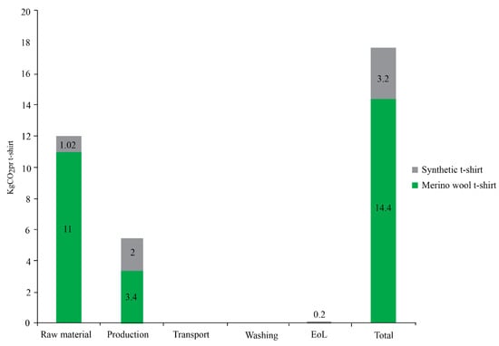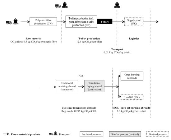 - In contrast to other impact categories it was assumed that landfilling of synthetic t-shirts is less significant for CCIPs, and hence the life cycle stage EoL landfill (i.e., in UK) was not accounted for.