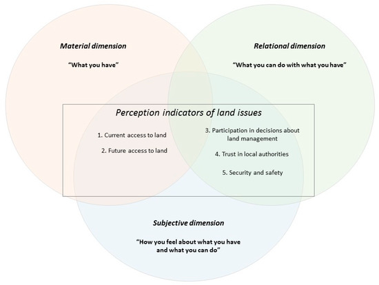 Perception indicators representing subjective evaluations of well-being issues related to land.