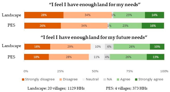 Access to land comes out as a significant concern across the 20 villages surveyed, with 62% of the 1129 respondents disagreeing with the statement that their current land access was enough to meet their household needs; and 47% of respondents stating their future access would not be enough (Figure 3).