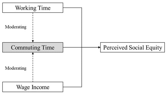 Furthermore, within the context of Western countries, many researchers noted what is termed the “commuting paradox” [33,35,36]. Generally speaking, commuters are willing to spend more time commuting in order to obtain better jobs and higher wages. Receiving a higher salary reflects the return on one’s efforts spent commuting, and individuals are more likely to consider longer commute times as fair if the degree of effort is equal to the degree of return. Given this paradox, we also analysed the moderating effect of working time and income on commuter’s perceived social equity.
