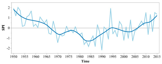 Standardized Precipitation Index (SPI) for the study area, 1950–2015 period.