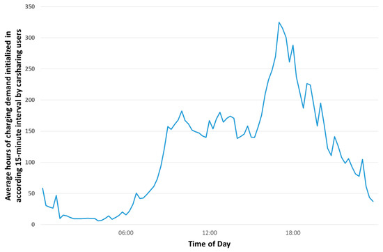 Average charging demand over the course of the day (user group: carsharing, based on 15 min interval).
