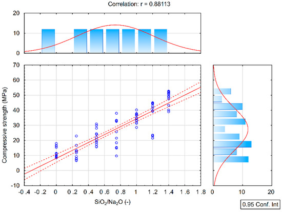 Correlation analysis of the compressive strength and the SiO2/Na2O ratio.