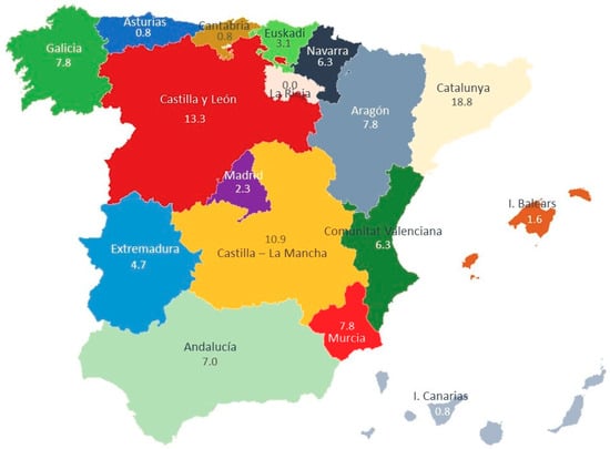 The first type is made up of technology push measures, aimed at promoting R & D activities to promote the development of technological learning curves in order to facilitate the incorporation of renewable energy sources to agricultural holdings, through direct investment or grants []. In the case of Spain, the Integrated National Climate Energy Plan already warns of the privileged position of regions when exploiting their strengths, increasing their competitiveness and their potential for innovation to contribute to the objectives set for 2030.