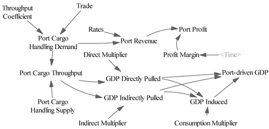 For port enterprises, an increase in port cargo throughput will promote increases in port revenue and port profit. For the national economy, the economic contribution of port production mainly involves three parts: direct economic contribution, indirect economic contribution, and induced economic contribution [43].