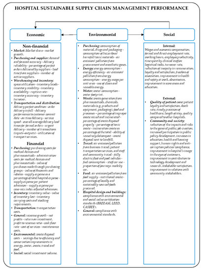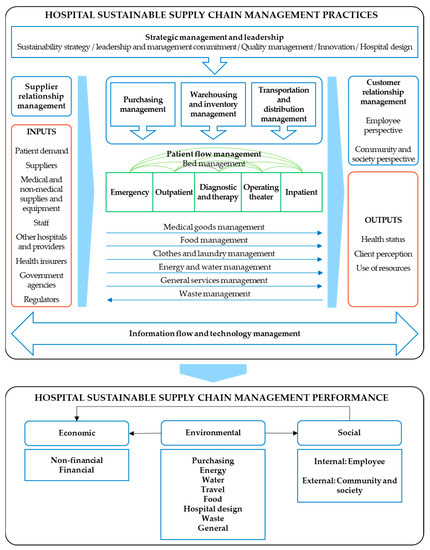 In response, the aim of this article is to present a systematic review and an integrative framework for SSCM practices that can contribute to sustainable performance in hospital settings. Three research questions are specifically addressed: (1) What are the main SSCM practices applied by hospitals? (2) What are the main sustainability performance metrics used by hospitals? (3) How can the relationships between SSCM practices and performance be framed in the hospital setting?