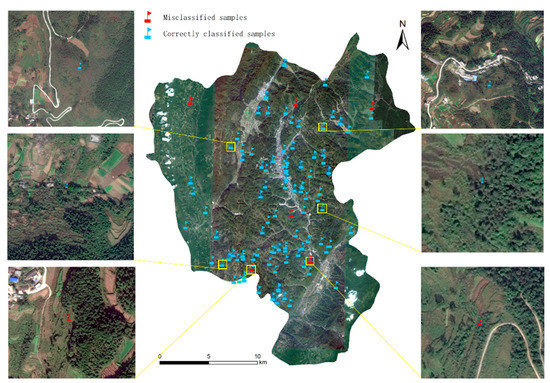 Google Earth images with a spatial resolution of 0.52 m were utilized to assist selecting training samples and assessing accuracy. These Google Earth images were downloaded using a 91 Satellite Imagery Assistant tool developed by the Digital Cloud Technology Co., Ltd. [44]. DEM datum, with a spatial resolution of 30 m from the Platform of Geospatial Data Cloud, were utilized to extract slope and elevation information.