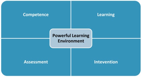 To create powerful instructional settings which help students to gain knowledge and skills, we should take into account the current understanding of instructional design []. In the field of learning and instruction research, there is now a broad consensus that effective learning occurs when learning environments are ‘powerful’ stimulating learning which is “constructive, cumulative, self-regulated, goal-oriented, situated, collaborative’ and taking into account ‘individually different process of meaning construction and knowledge building” [] (p. 106). De Corte, Verschaffel and Masui [] developed a model for designing powerful learning environments, namely the CLIA-model. They pinpoint that any theoretical model concerning instruction should include: (a) specific educational goals, that should be achieved (Competences in a specific domain); (b) a theory-based background as to what learning processes needed to achieve the competences (Learning); (c) it should propose specific principles and methods upon teaching encouraging to encourage the learning processes (Intervention) and d) it should consider assessing the outcomes (Assessment). All four of these components are interconnected (Figure 1) [].