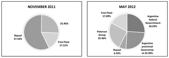 Shareholder structure of Yacimientos Petrolíferos Fiscales S.A. (YPF). Source: Author elaboration based on Costamagna, R. et al. [8].