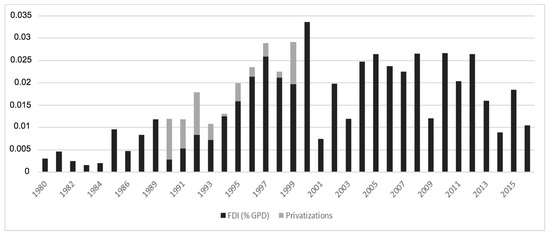 However, the crisis suffered by the country in 2001 completely changed the investment scenario. While global investment in 1999–2000 was US $ 34.406 million, in 2001–2002 it fell to US $ 2.951 million [42]. The effects of this crisis moderated, but Argentina’s 1990 FDI boom did not happen again. The main reason why investors were reluctant to invest in the country was due to the policy change implemented in Argentina after the crisis. Since 2003, Argentina has turned to nationalism. His government justified this new policy in order to restore the balance of payments, reduce inflation, and promote employment [43]. This nationalist policy culminated in the nationalization of YPF in 2012.