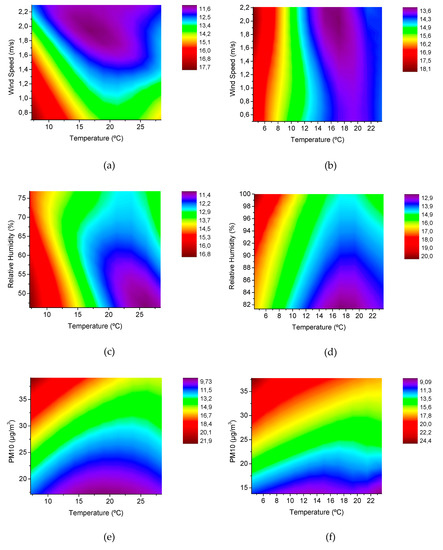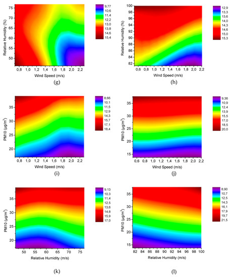 3.3.2. Combined Effects of Meteorological Variables and PM10 Concentrations on PM2.5 Concentrations