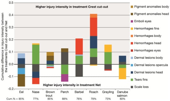 - Mueller, M.; Pander, J.; Geist, J. Evaluation of external fish injury caused by hydropower plants based on a novel field-based protocol. Fish. Manag. Ecol. 2017, 24, 240–255. [Google Scholar] [CrossRef]