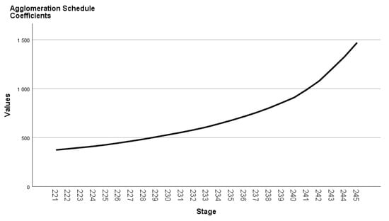 A descriptive statistic was used for the whole sample and factor and cluster analysis was applied to segment the organic consumers. The data were analyzed using SPSS software, version 24. Factor analysis was performed and segmentation was conducted using K-means cluster analysis. The factor scales consisting of six factors were used in cluster analysis. Before K-means clustering a hierarchical cluster analysis using Ward Linkage was conducted to determine the adequate number of clusters. The results of this cluster analysis indicated that the optimal number of clusters was 4 (Figure 1). The differences between the segments were examined using the average related consumer attitude scores for certain clusters and the average scores of purchasing motives.