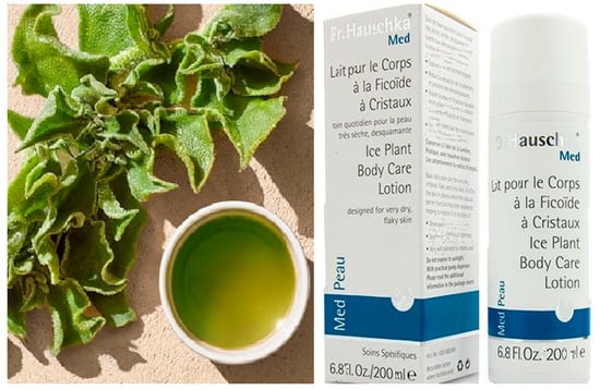 Ice plant leaf extract and body care lotion, an example of several uses of this plant (Dr. Hauschka—https://www.dr.hauschka.com/it_IT/).