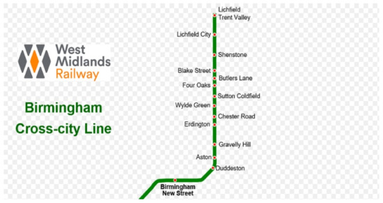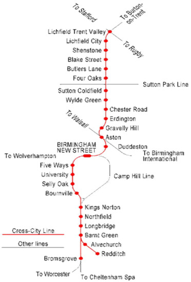 Figure 3). However, the line in focus of the study for this paper has 14 stations between Lichfield Trent Valley and Birmingham New Street (