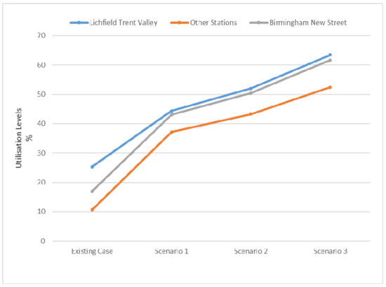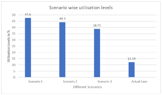 Figure 9 represents and compares the station-wise utilisation levels for the different scenarios discussed in the study.