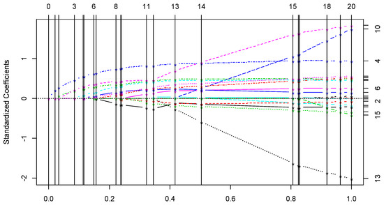 - Efron, B.; Hastie, T.; Johnstone, I.; Tibshirani, R. Least Angle Regression. Ann. Stat. 2004, 32, 407–451. [Google Scholar]